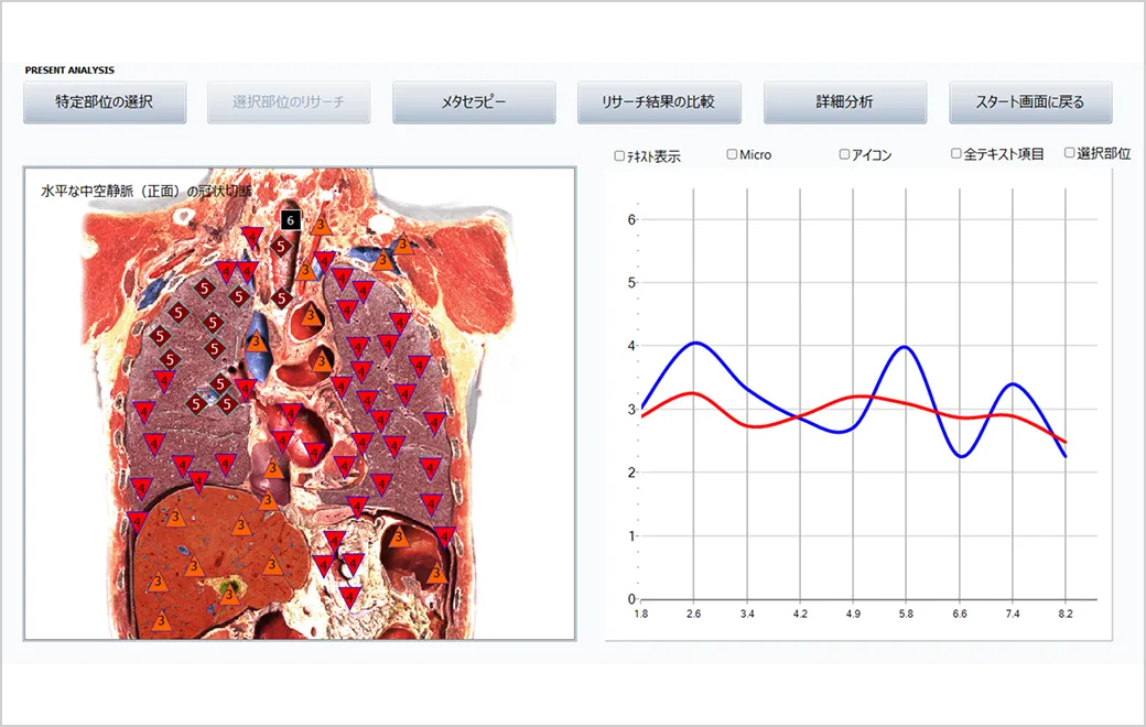 ヘッドセットを装着するだけで、現在の自身の体調を分析することができ、ご自身の脳の松果体が訴えている身体の隅々までの状態をコンピューターの画面上に可視化・表示します。